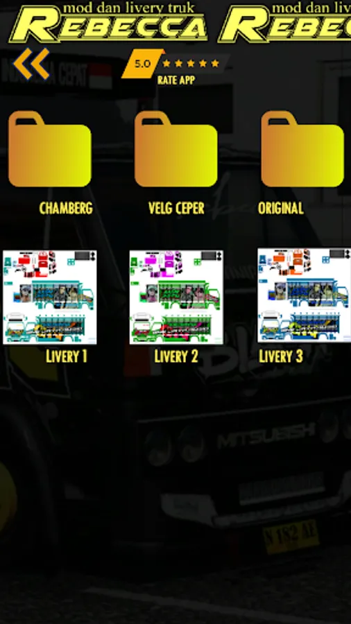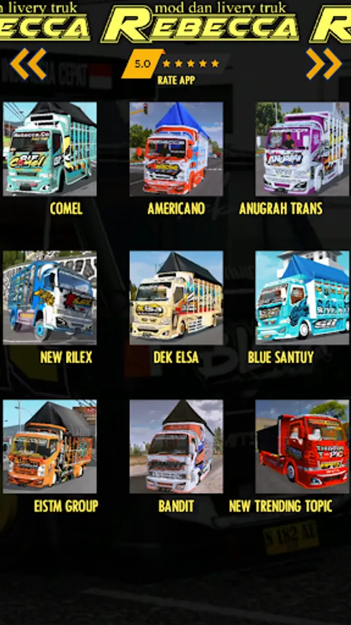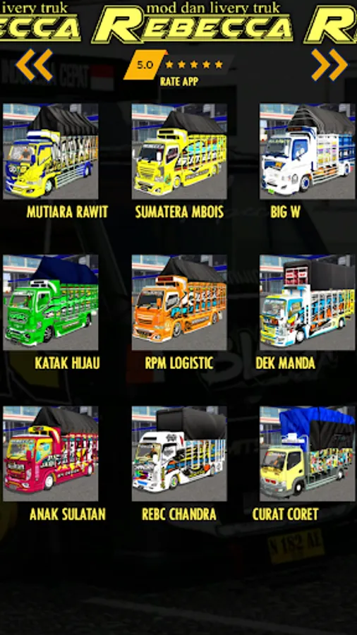 If you download the mod in our application, you will automatically get a bonus livery mod bussid truck Rebecca which has various stickers and truck skin colors, you can have all Rebecca concept livery and free of charge, than you are tired of looking for ways to make your own bussid livery , you better use the Rebecca Canter livery truck application to make it easier for you to have a Rebecca truck livery collection with premium quality and full HD graphics. For bigger variants, look for the long container bussid mod download, download the bussid travel mod, and for those who want to be anti-mainstream have the bussid kerala mod, bussid kerala traffic mod download, don't forget the private bussid mod car, tamil car mod too.