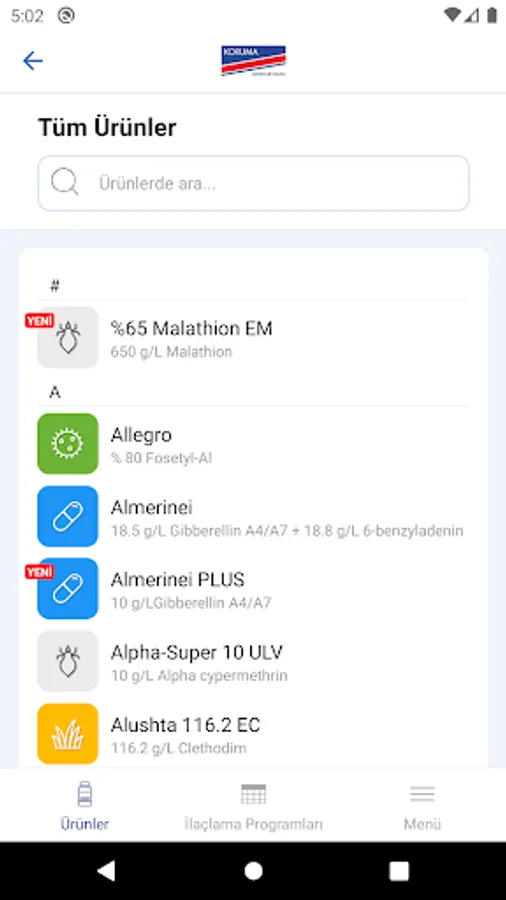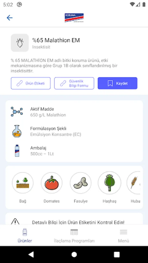 You can reach the herbicides, fungicides, insecticides and other plant protection products of protection agriculture and see the product details. You can list products by plants, active substances and harmful organisms. You can reach the product details, safety data sheet, product label, active substance, formulation form, application dose and period for harmful organisms.