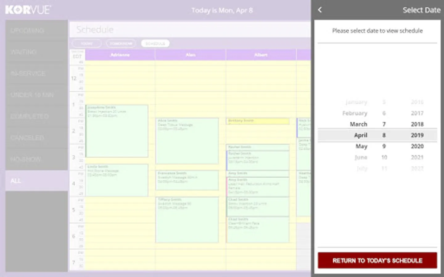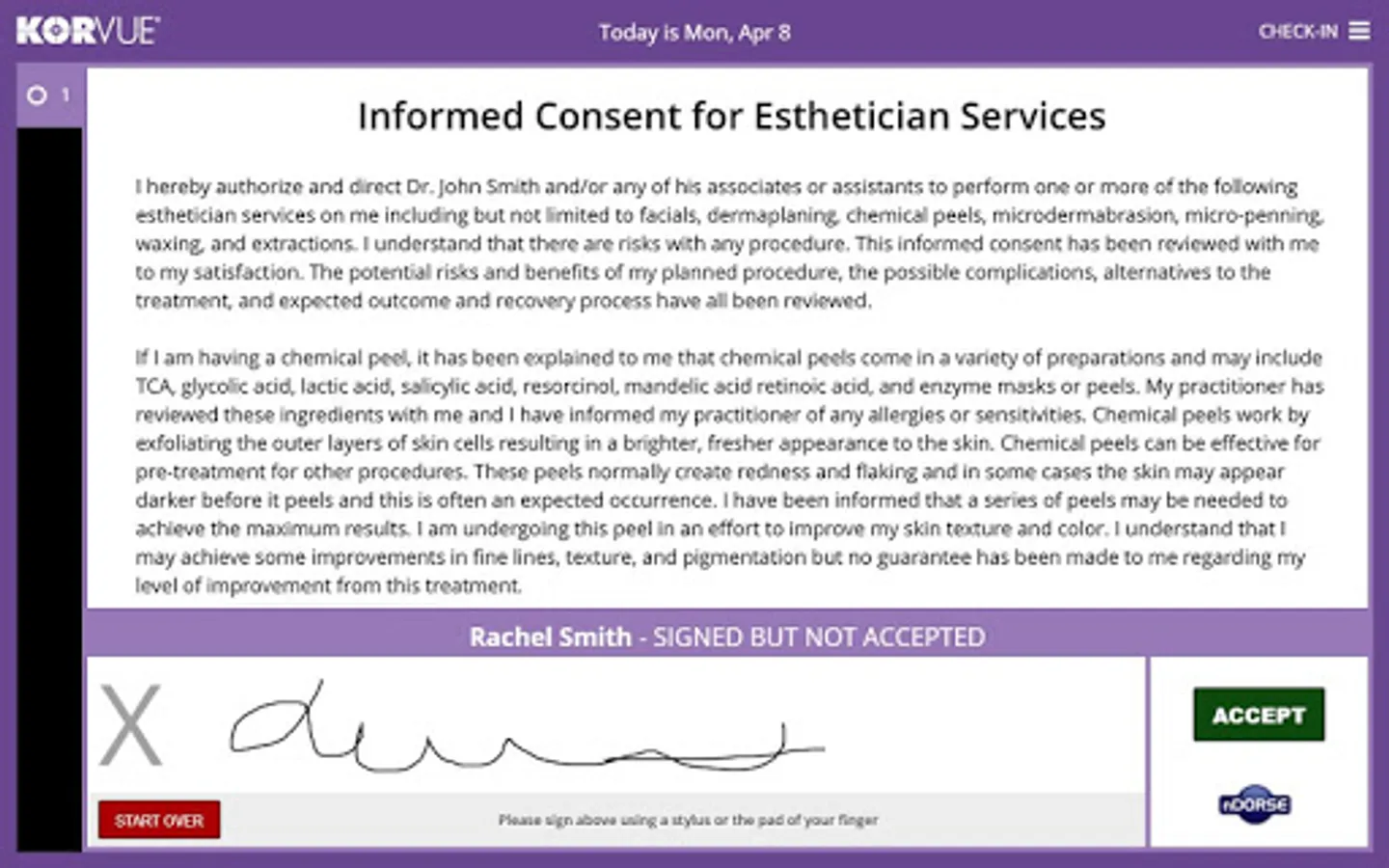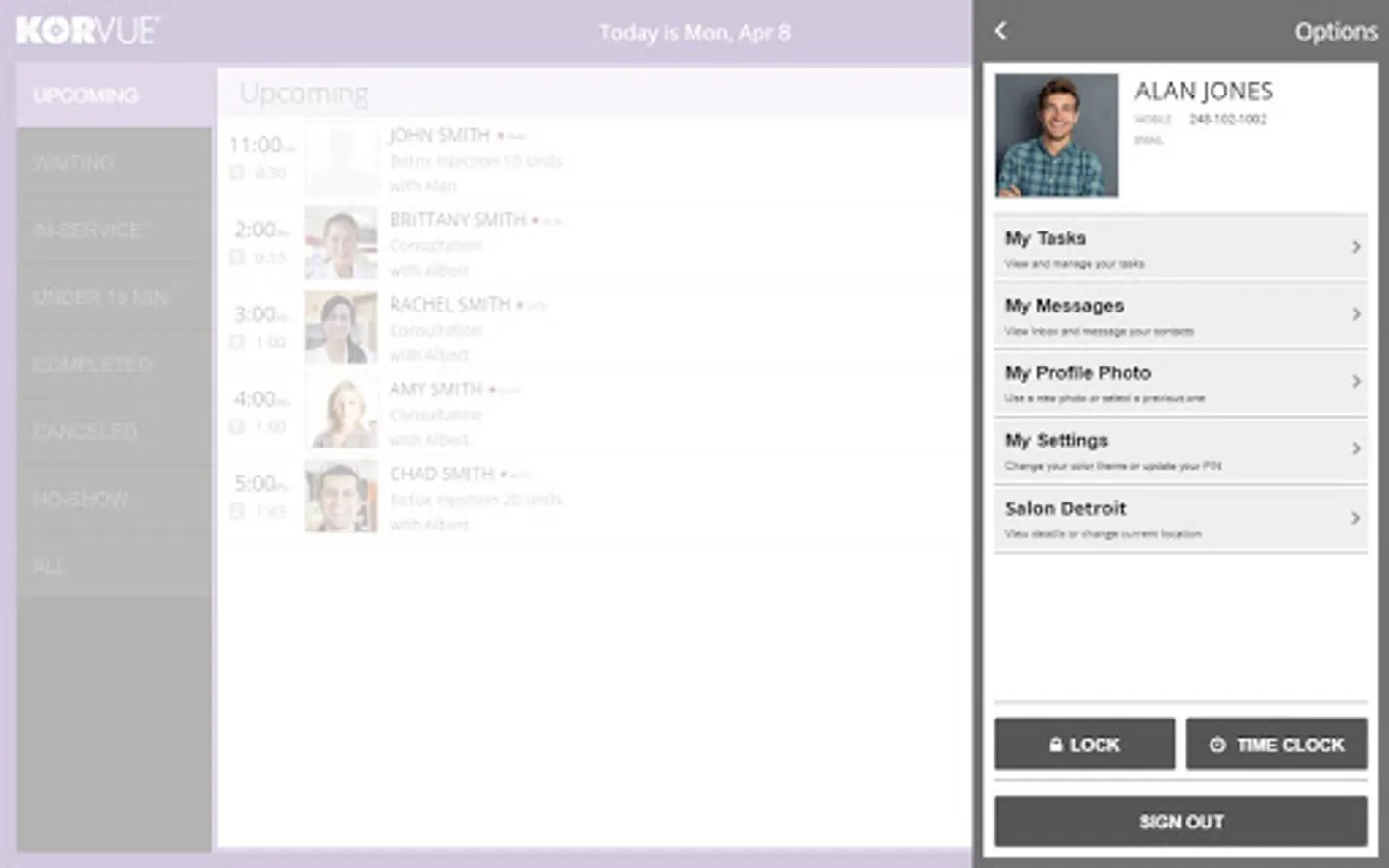 KORVUE Check-In is a popular add-on to the KORVUE system, designed specifically for the front desk and greeters. It makes check-ins quick and automatically prompts you when a form is needed and a consent signed. Forms and signatures can be completed directly on the iPad, or you can use the SMS button to send the request to the client's phone, allowing them to complete the process on their own device.