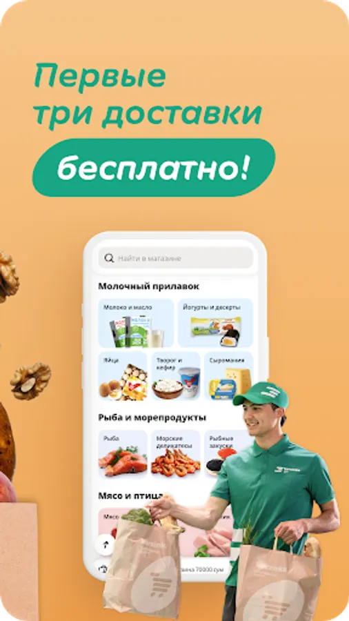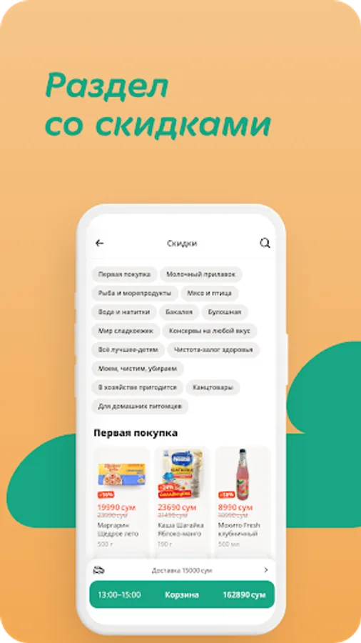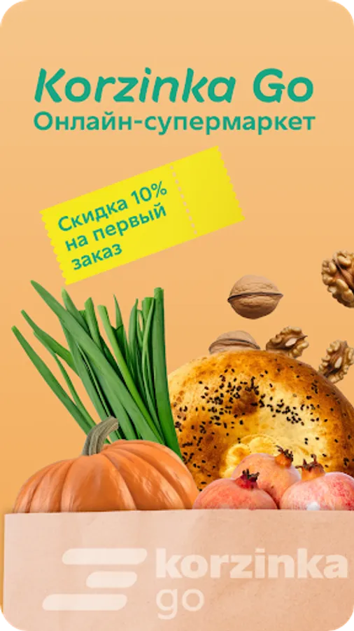 10% discount on the first order. Promotions, promos and discounts, like in Korzinka stores, and even more. Additional interesting offers exclusively in the Korzinka Go app.