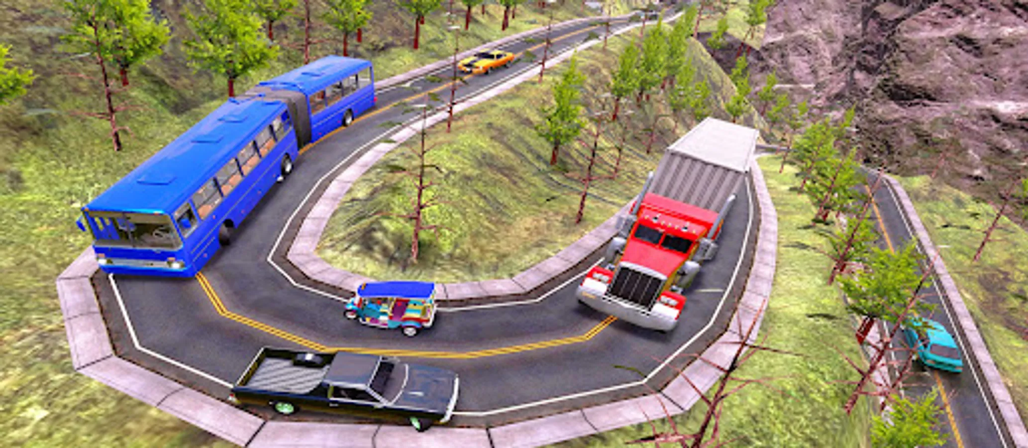 Welcome to "Risky Roads: Hilly Bus Driver" – the ultimate bus driver simulation game that puts your driving skills to the test. If you're a fan of bus driving games and love the thrill of navigating the world's most dangerous roads, then you must try this amazing game. Get ready for a heart-stopping adventure as you take on risky mountain tracks with dangerous curves and narrow passages. With incoming traffic that could crash right into you, it's up to you to stay focused and stay on course.