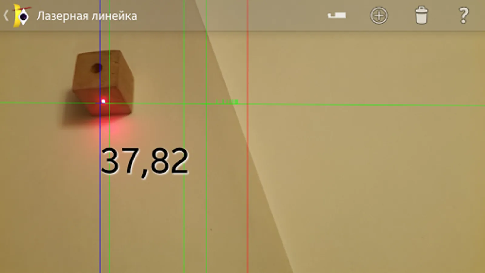 Just point the laser beam at an object, and drag your finger across the screen, while the blue line will not cross point of the laser, and you see the result.