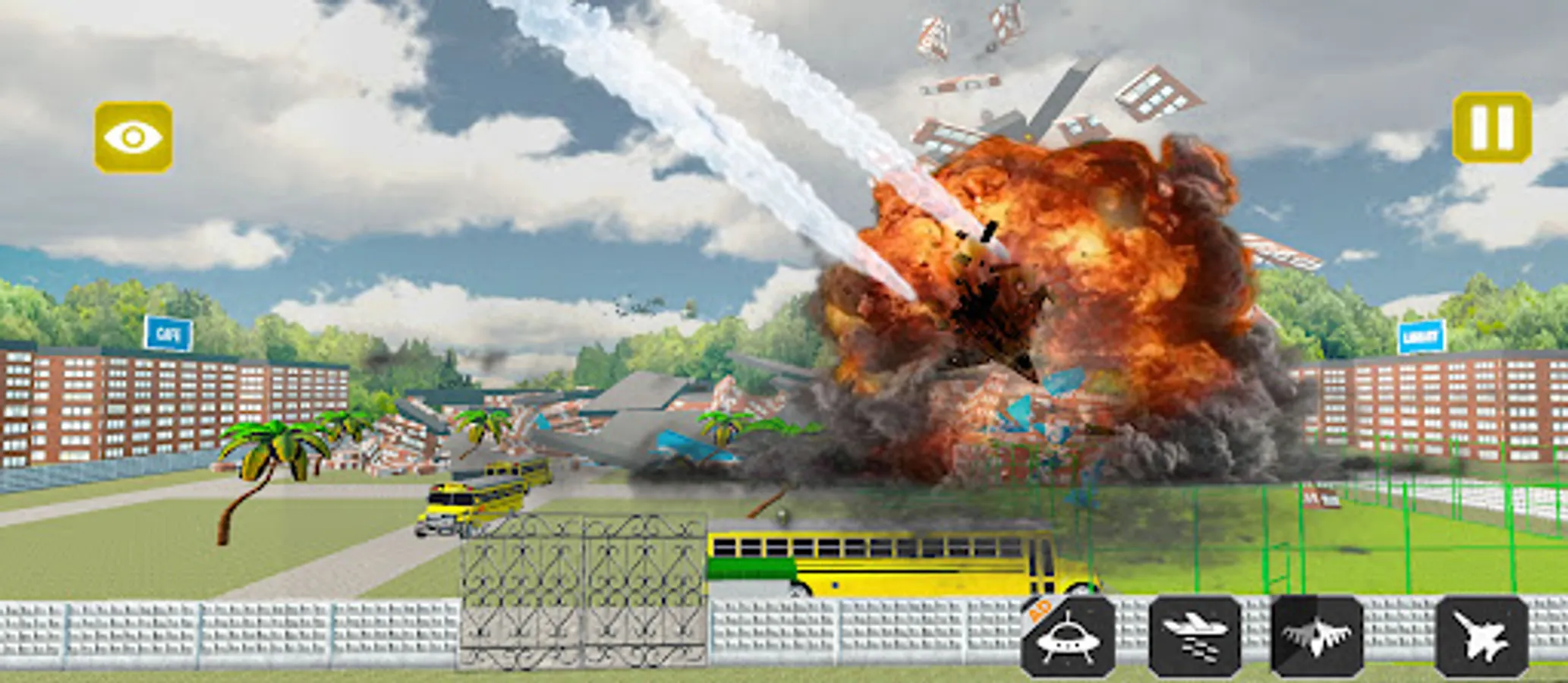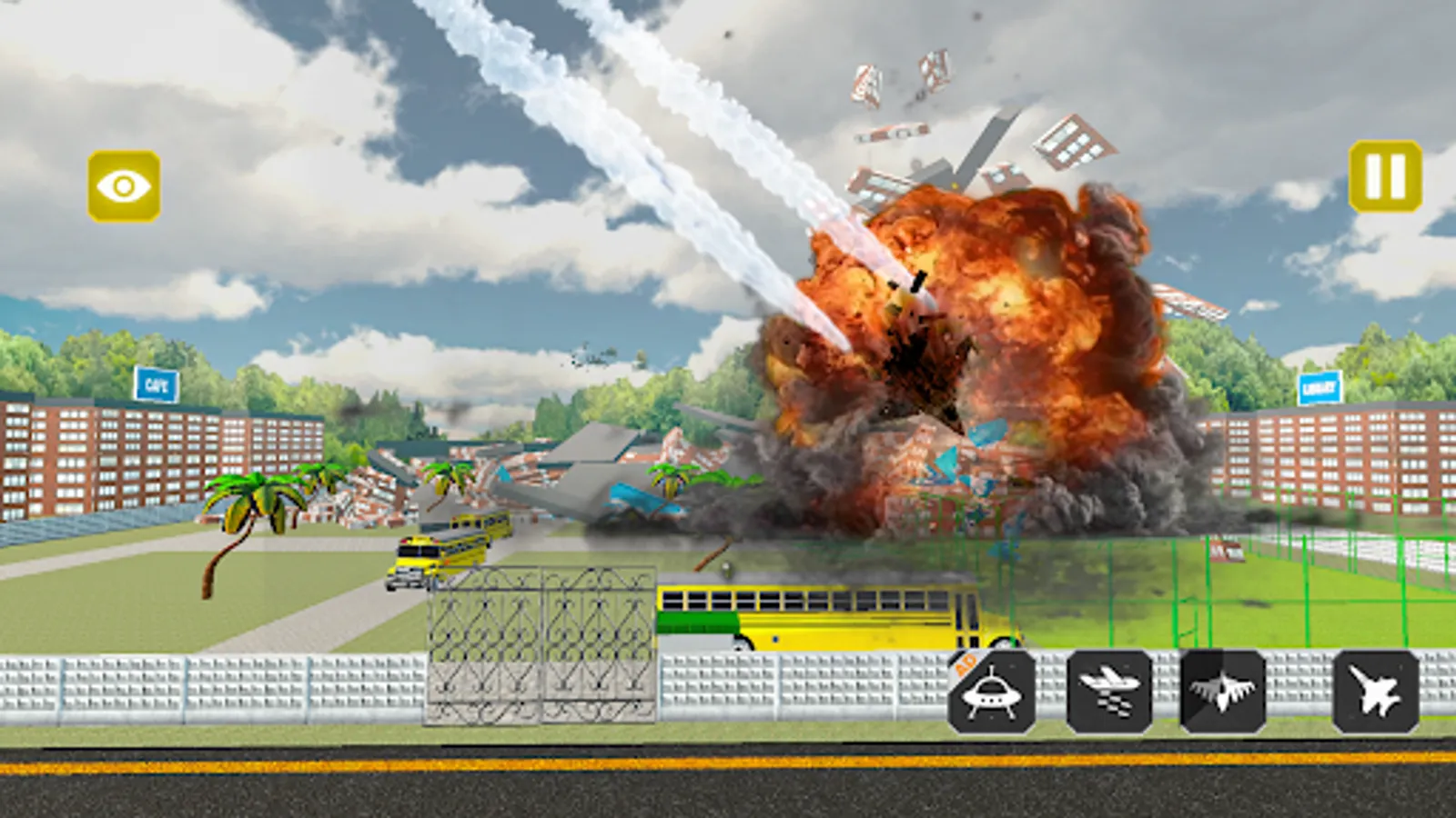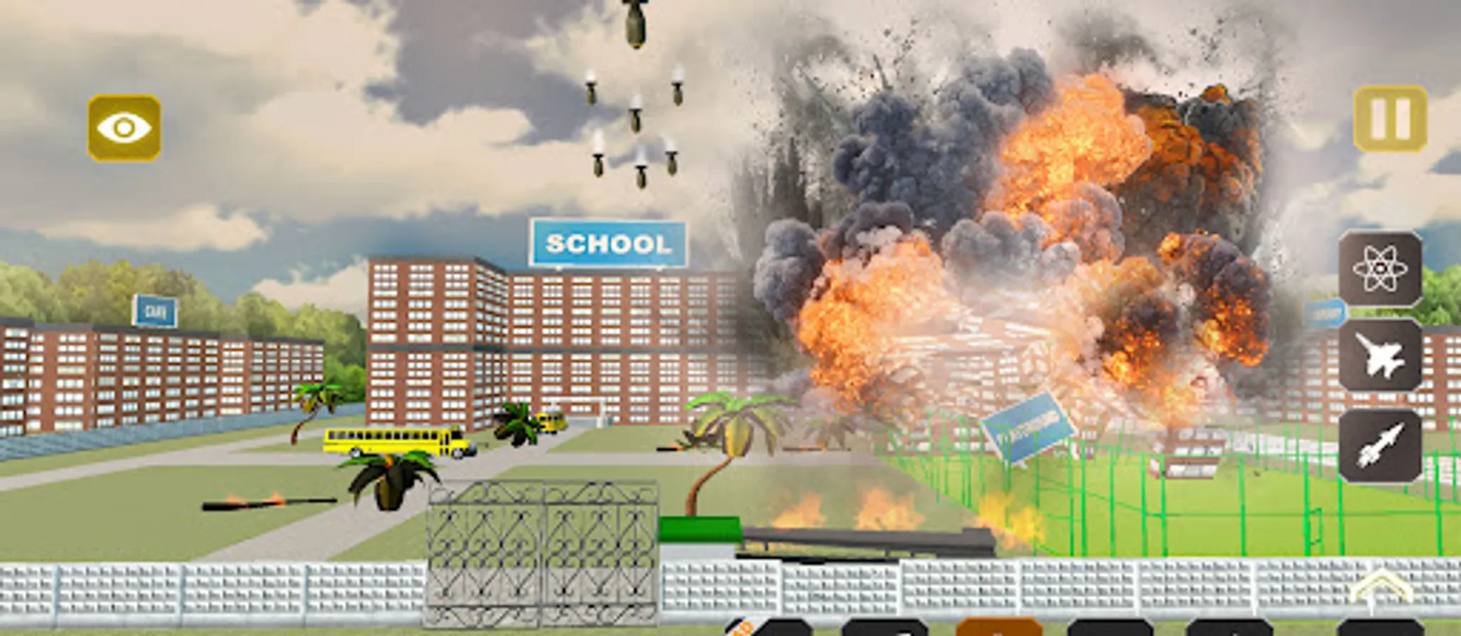 Your task is to destroy the school and use whatever weapons necessary to smash the school.