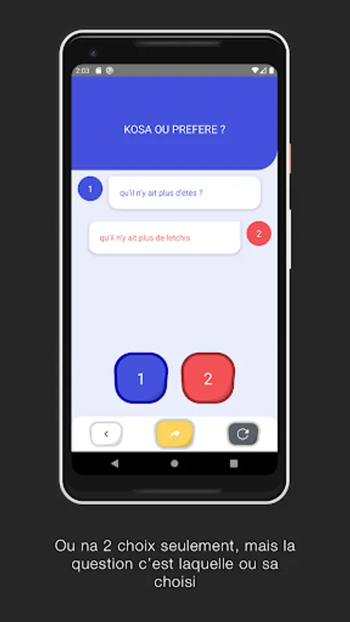 This game is specially designed to be played with friends and will challenge you with impossible choices on various themes related to Reunion Island. In each round, you'll have to make an impossible choice between two options and see how it compares to other players' choices.