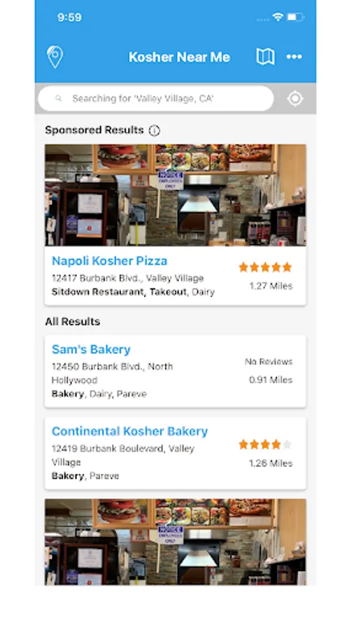 Kosher Near Me is committed to maintaining up to date information! Email listings@koshernear.me to submit a new kosher restaurant or let us know about updates. You can use the option within the app to report issues. Want to notify us of a new listing? Click at the top right to recommend new listings! Interactive map includes directions!