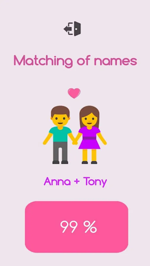 Our love calculator will count a percent of the probability that your chosen one matches you.