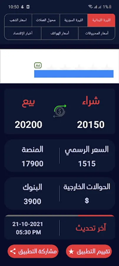 Follow the rise and fall of the Lebanese pound and the Syrian pound against the dollar, in addition to gold and fuel prices