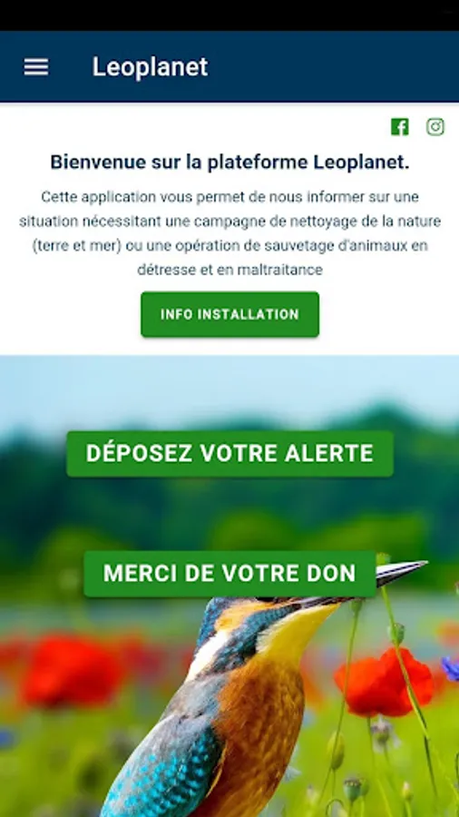 Leoplanet is an association for the preservation of the environment and animal protection. The application allows us to inform us of a situation requiring a campaign to clean up nature or a rescue operation for animals in distress and ill-treatment