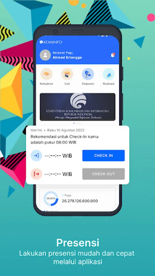 Kosmo is an internal application for the Ministry of Communication and Information to facilitate administration in the work environment through mobile device applications. Kosmo was developed by integrating with the internal application ecosystem at the Ministry of Communication and Information. With just one Kosmo application, the internal members of the Ministry of Communication and Informatics can access the following features: