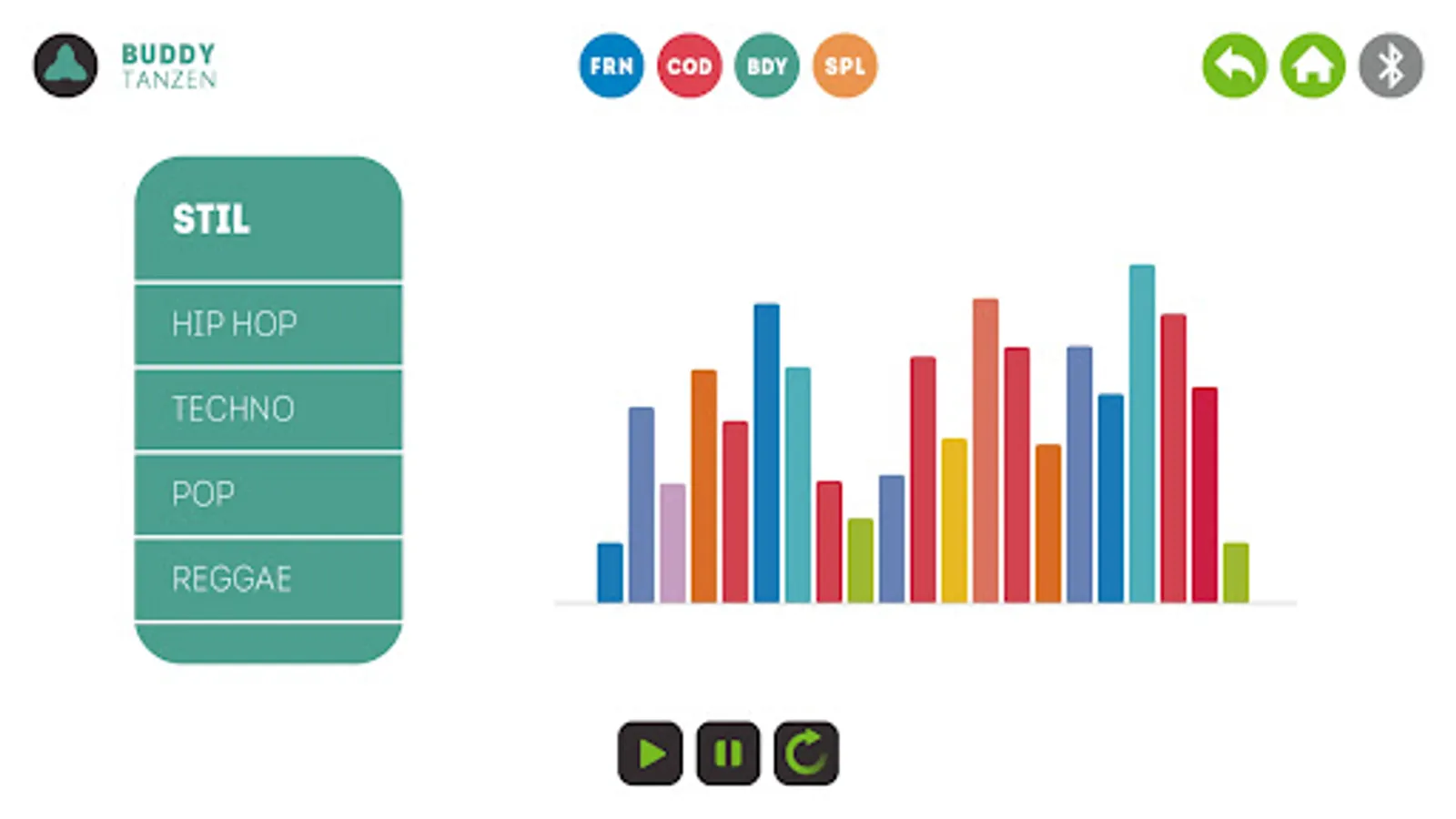 BUDDY with 2 modes: Under EMOTIONS, sounds and facial expressions can be transferred to the robot, and DANCE lets the robot perform the most amazing movements.