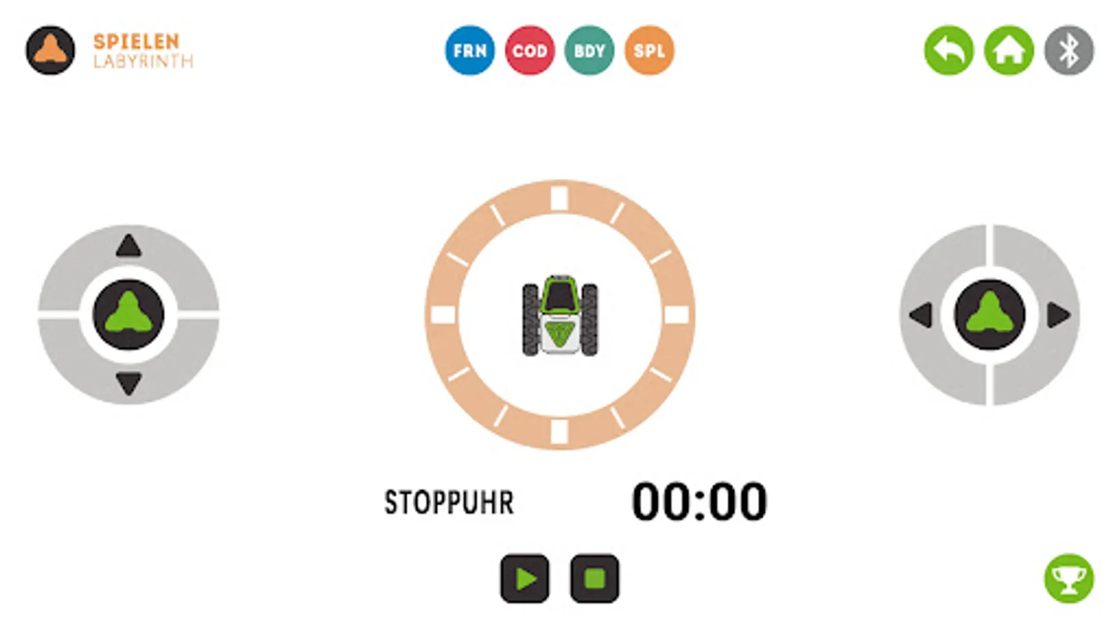 PLAY: Here real courses can be set up and the robot can detect obstacles with the help of the infrared sensor. Whoever gets Mazzy through the course fastest wins the game