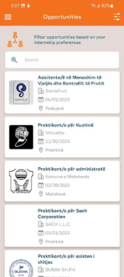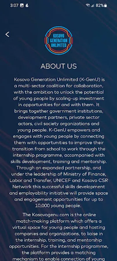 Kosovogenu.com offers a virtual space where companies and organizations operating in Kosovo can publish their internship opportunities, to find interns, and, at the same time, young people looking for an internship can do it through their profiles they create within the platform, see the internship opportunities that are available and apply for those jobs.