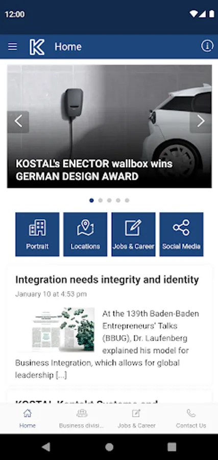 The myKOSTAL app introduces you to the world of Leopold Kostal GmbH & Co.KG and continuously provides you with exciting information and news about the company.