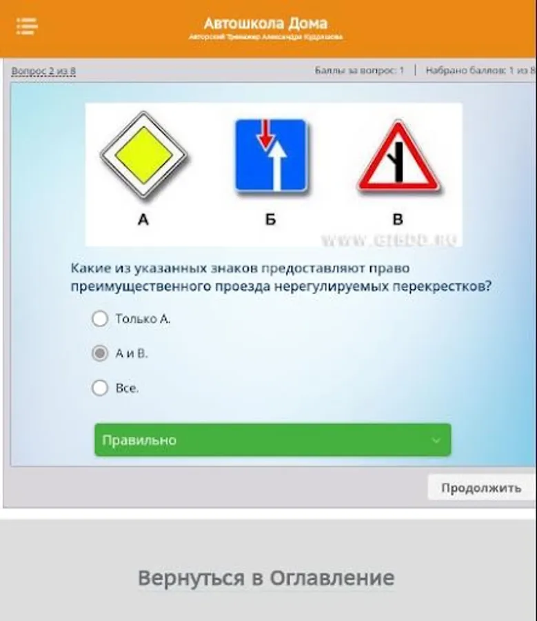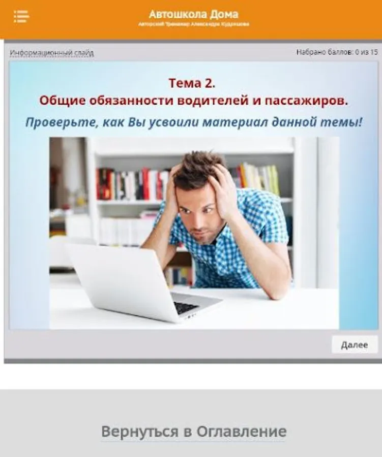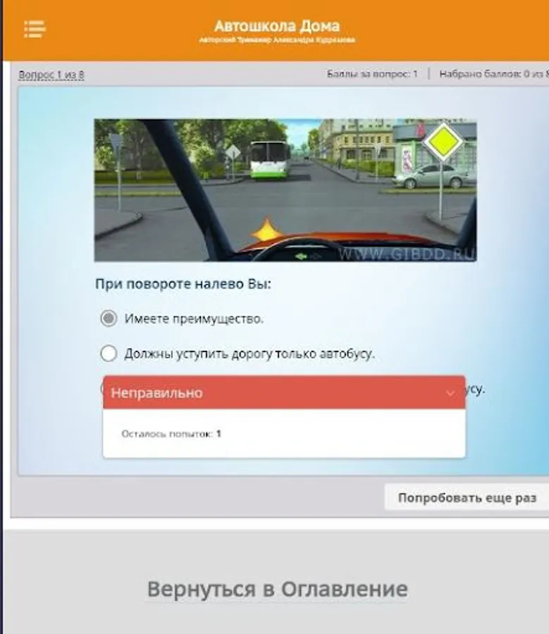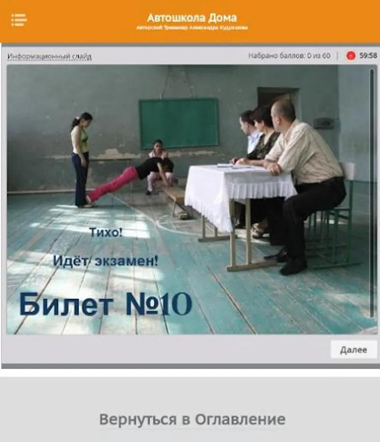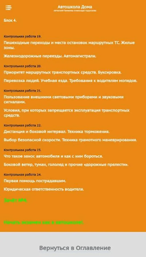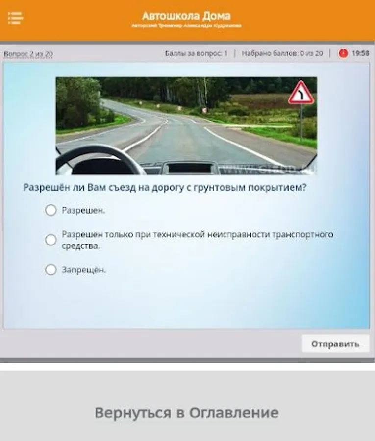 So, this is the Test Work simulator. Here you can check how you have mastered the material of any topic of the training course. And also check if you are ready to take the Exam in the traffic police.