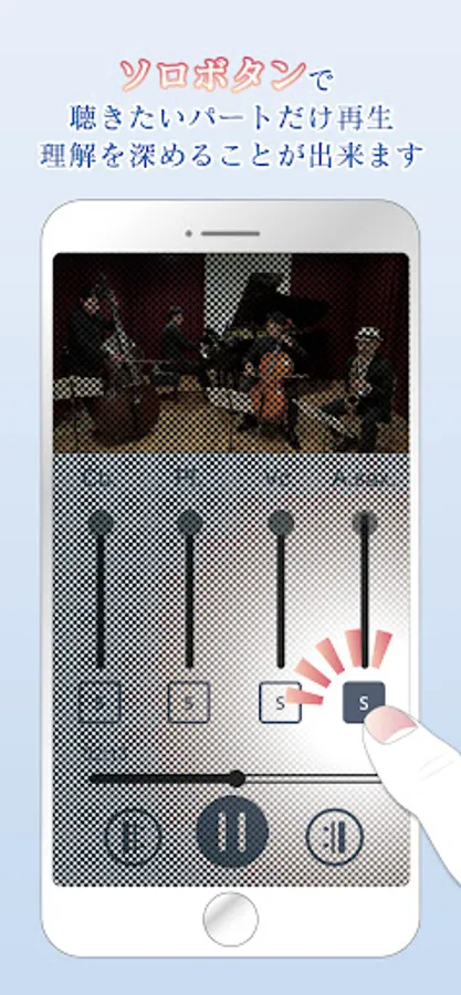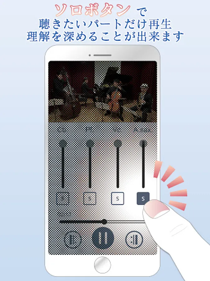By tapping the S (solo) mark under the name of each instrument, you can hear only the sound of that instrument.