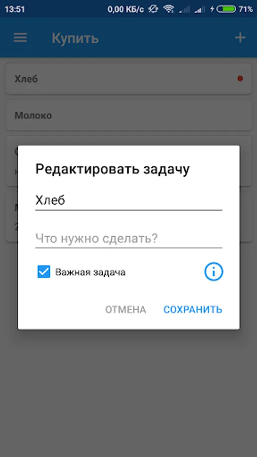 A simple application, without advertising, to organize plans and tasks for the day. Task lists allow grouping for more convenient work with the application.