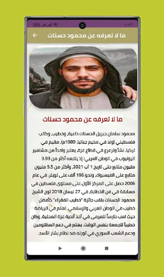 The Mahmoud Al-Hasanat application contains the most powerful lectures of Sheikh Mahmoud Al-Hasanat. The application also enables you to listen to Mahmoud Al-Hassanat's lectures in high quality and clear voice.