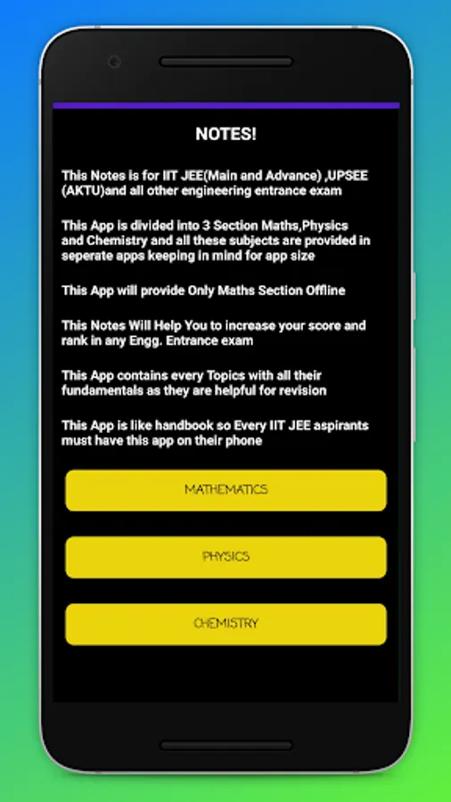 Getting success in IITJEE exam is made very easy now with this application because it provides the Best notes for each and every subjects which are prepared by