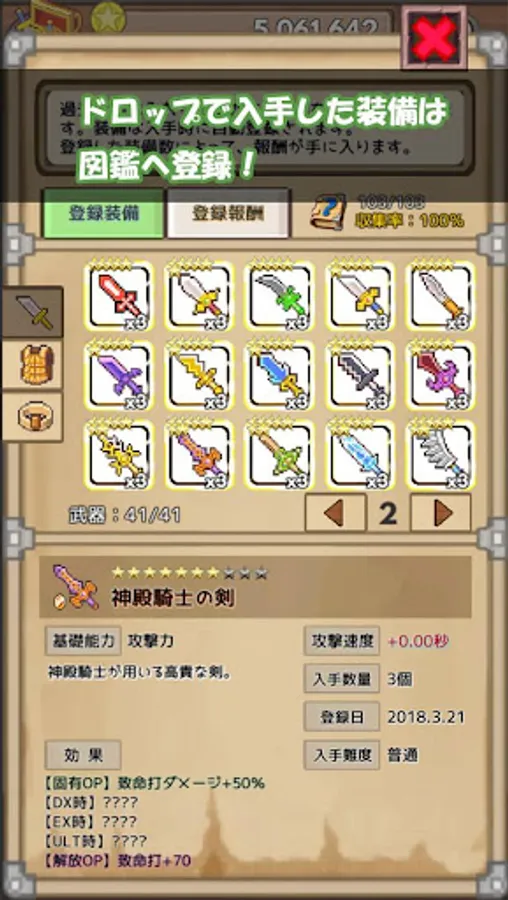 There are 1 to 5 options randomly attached to the equipment, and there are nearly 70 types, so the degree of freedom may be high.