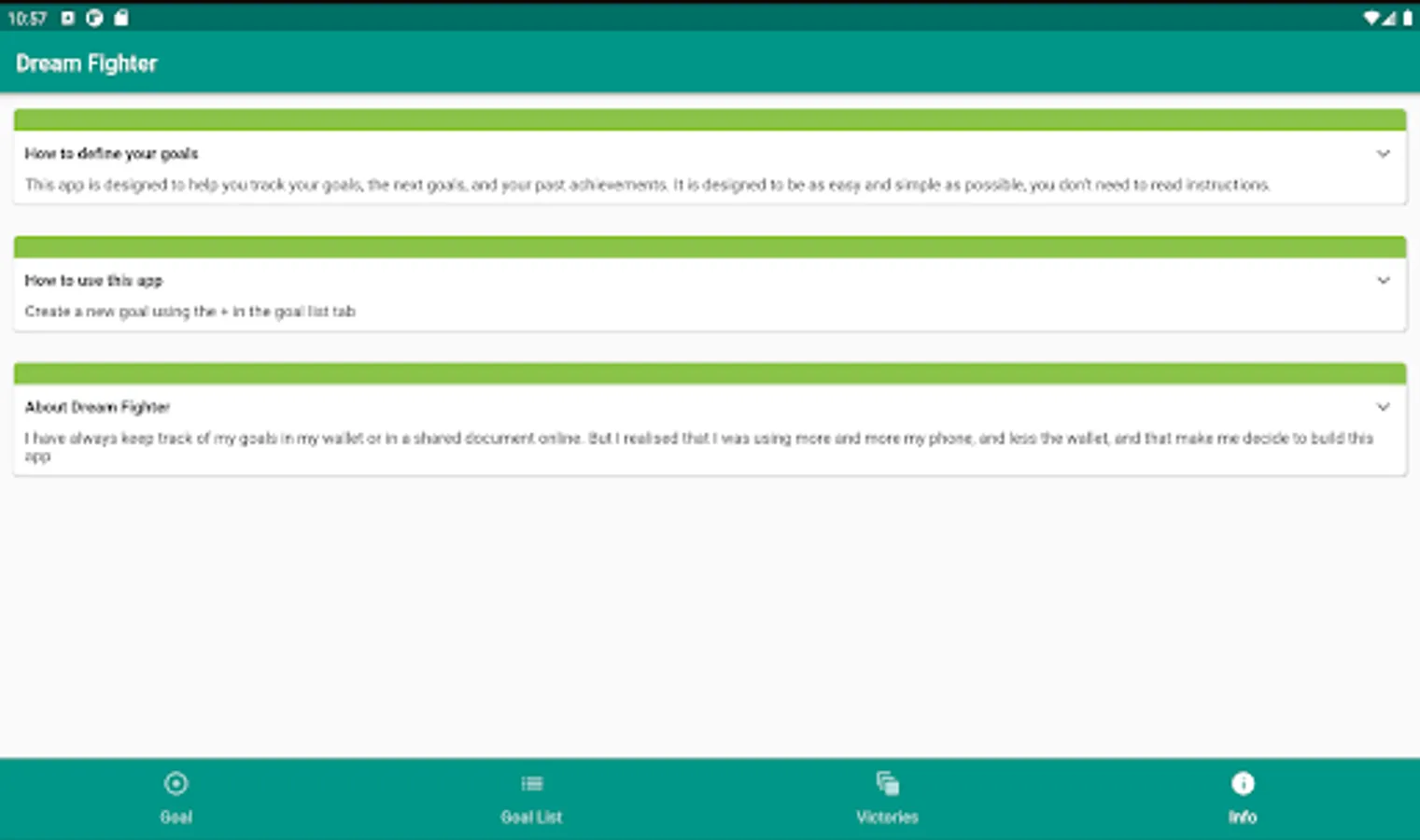 This app allows you to create, sort and mark your goals as done. The app is a minimalist, simple and effective way to keep you laser focus in your next goal