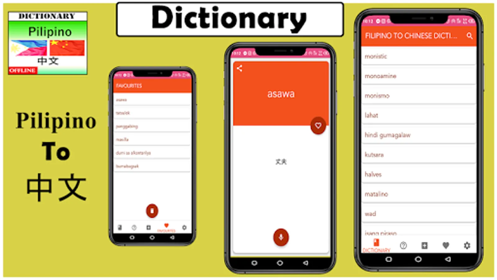 It is FREE app from Filipino Chinese dictionary. It has very special Features like easy to access and use and it also consume less space to install. Filipino to Chinese language is helpful to find Arabic meanings in split seconds. You can use this Filipino to Chinese language app for meanings of complex words. Filipino to Chinese dictionary app works with fast speed and has speech to text feature. You can see its icon on notification bar to open it quickly.