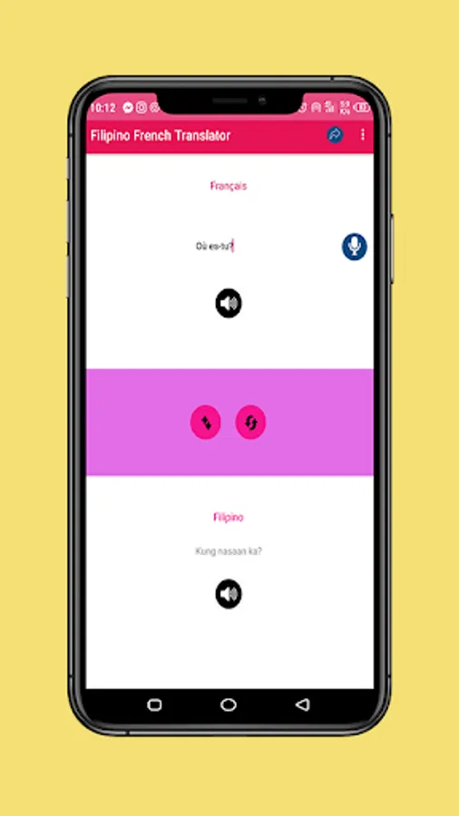 Ang pranses filipino app ay Libre at maaari mong gamitin para sa pagsasalin ng mga komplikadong pangungusap. ang wika ng pranses app ay may napaka espesyal na tampok para sa mga gumagamit. Sa pamamagitan ng French sa Filipino app maaari mong isalin ang kahit mahaba at mahirap na mga pangungusap sa mga split segundo. Kailangan mo lamang magkaroon ng isang koneksyon sa internet.