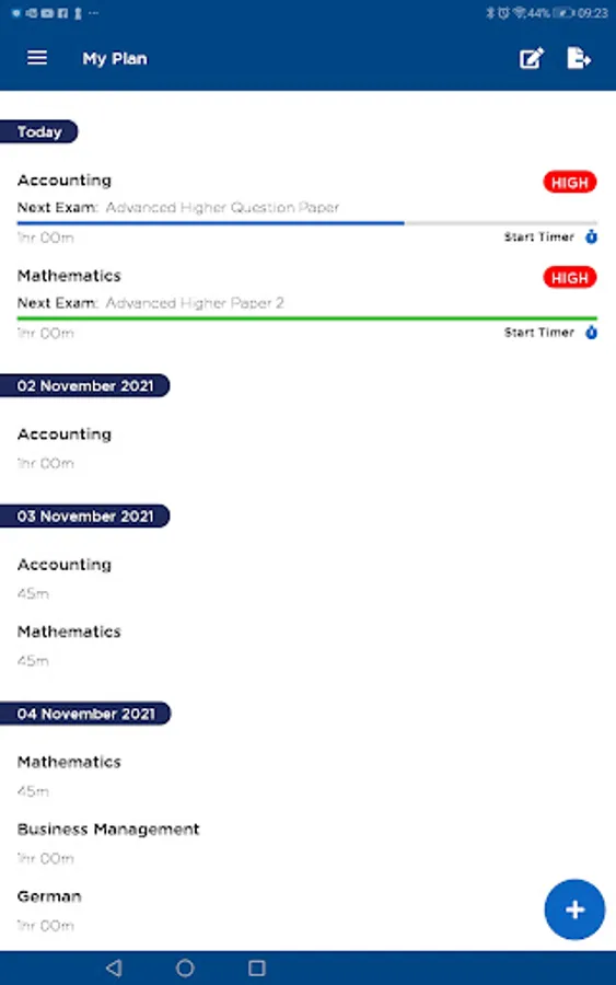 SQA’s My Study Plan app will automatically create your own personalised study plan based on your exam times, their importance and when you want to study.