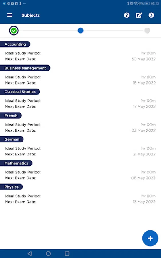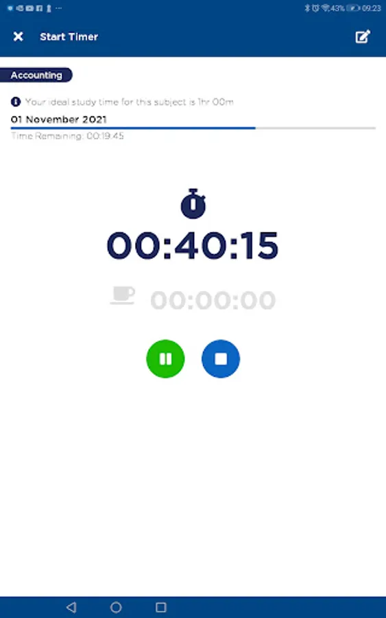 You can track study progress using the study timer and get optional reminders on the days you plan to study.
