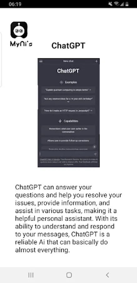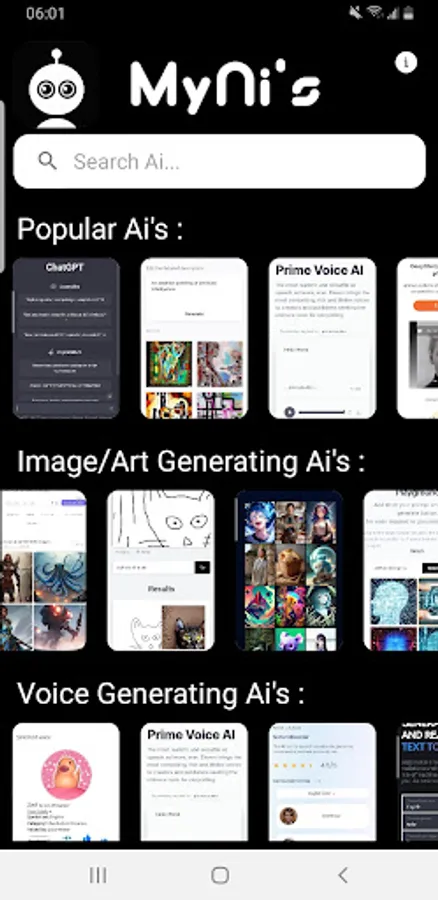 Our app is perfect for those who are passionate about the power of AI to transform the way we live, work, and create. With MyAI's, you can access various artificial intelligences, from chatGPT to Ais capable of generating high-quality images, videos, voices, music, and more - all for FREE. We believe that everyone should have the opportunity to explore the world of AI, and that's why we've made our app accessible to everyone.