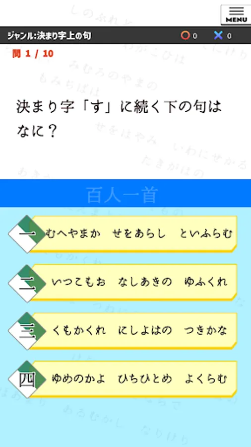 This is a 4-choice quiz app that lets you memorize Hyakunin Isshu ?!