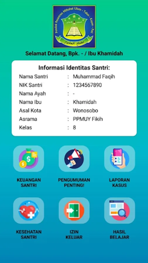 This application is called Santri-MUY (Miftahul Ulum Yahyawiyyah Islamic Boarding School Santri Information System).