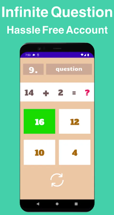 Easy addition and subtraction, Theme is designed to be easy on the eyes. Addition and subtraction questions are selected between 0 - 15 numbers and questions are formed.
