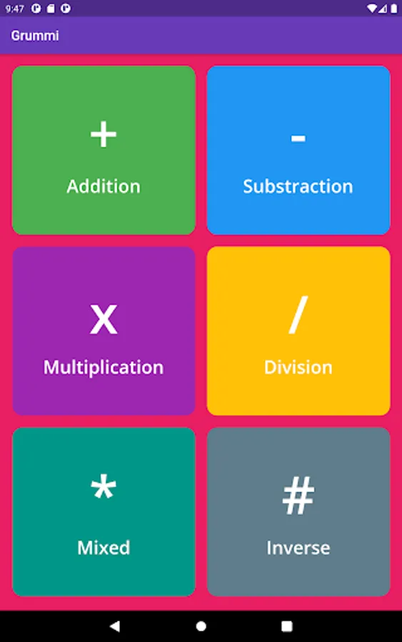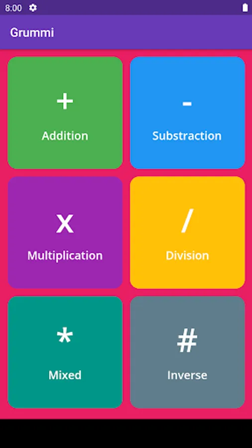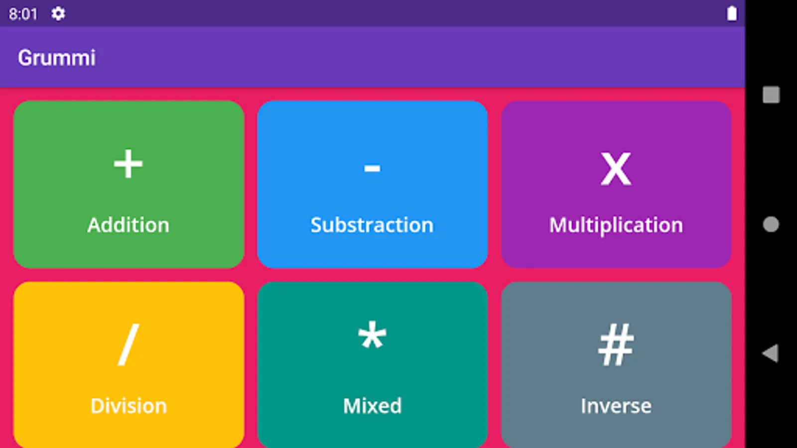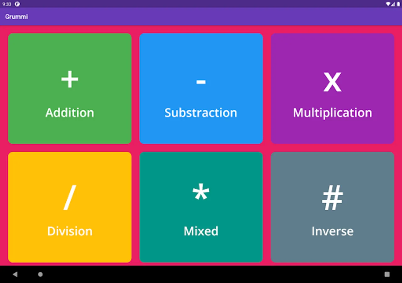 Grummi is an application for training in mental arithmetic. For each type of operation, it is necessary to try to give the most just results possible in a limited time.