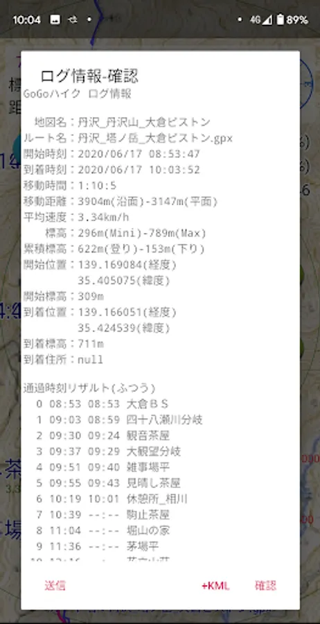 You can check your grades (movement distance, speed, time, cumulative altitude, etc.) from the acquired log even during or after the move. The acquired log can be saved and used.