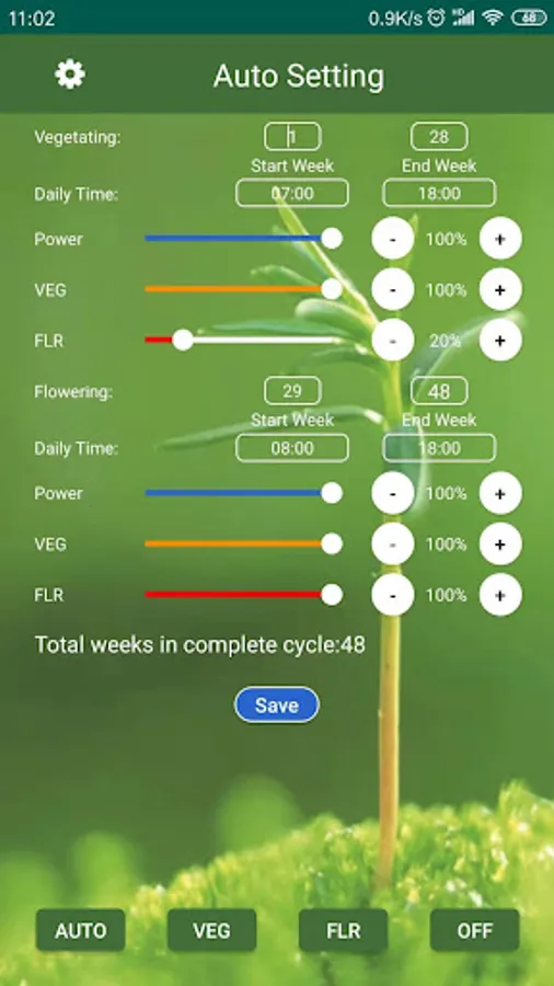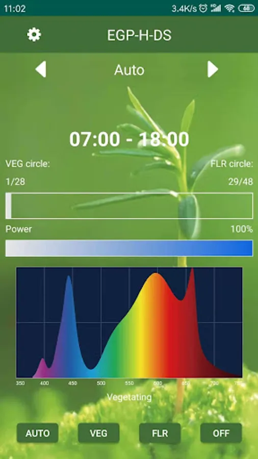 Control and program your eco-lamps EGP-H-DS product wireless with vegetating and flowering Spectrum,cycle weeks and daily time。