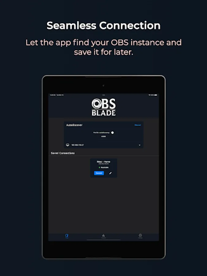 OBS Blade is designed to be your stream companion and help you to manage your live stream. While using OBS (Open Broadcaster Software) you can connect to the running instance and gain control over important parts of the software. This should help you to manage what your audience can see / hear without the need to switch to OBS on your machine and make such changes. You can keep doing what you do and easily use this app to control OBS!