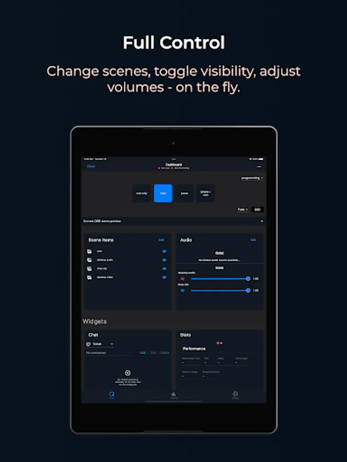 DISCLAIMER: This app is not in any way affiliated with OBS (Open Broadcaster Software). It's an unofficial, free and open source app to control OBS (https://github.com/Kounex/obs_blade)