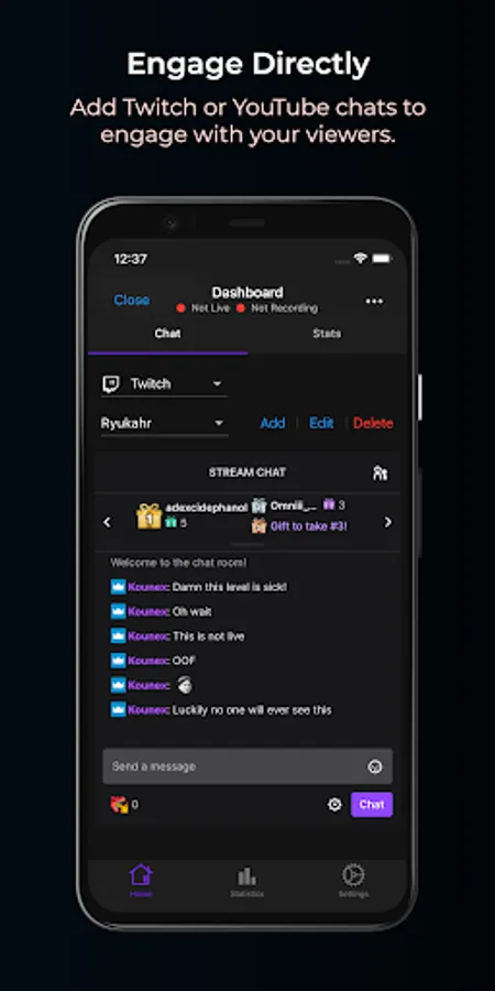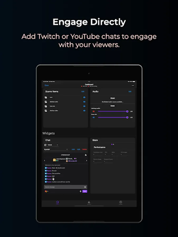 - See live statistics of your stream performance (FPS, CPU usage, kbit/s etc.)