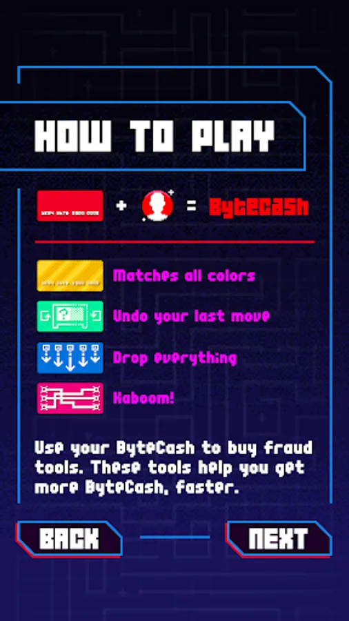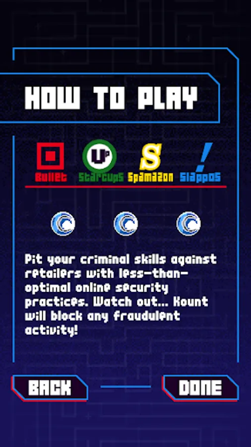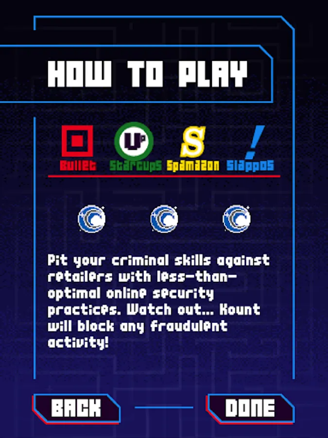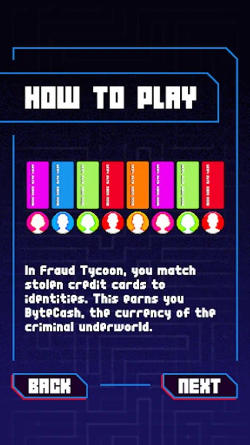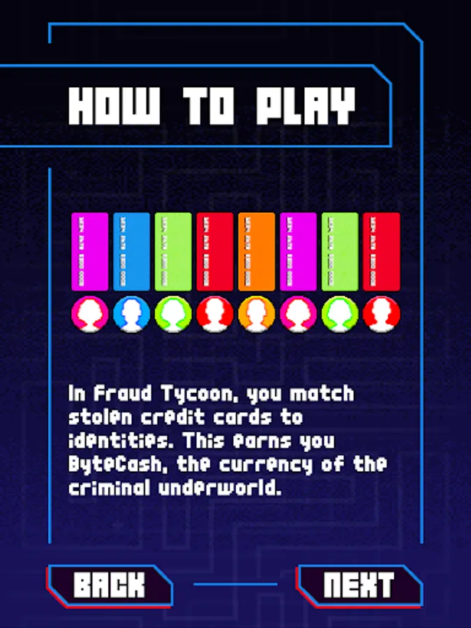 Using puzzle-based gameplay, Fraud Tycoon takes you behind the scenes of criminal organizations that prey on online businesses that have vulnerable security. Developed in conjunction with fraud prevention company Kount, Fraud Tycoon asks players to step into the shoes of a criminal and compete for the fake currency "Bytecash" to purchase stolen credit cards and actual fraud-enabling tools to build your criminal enterprise.