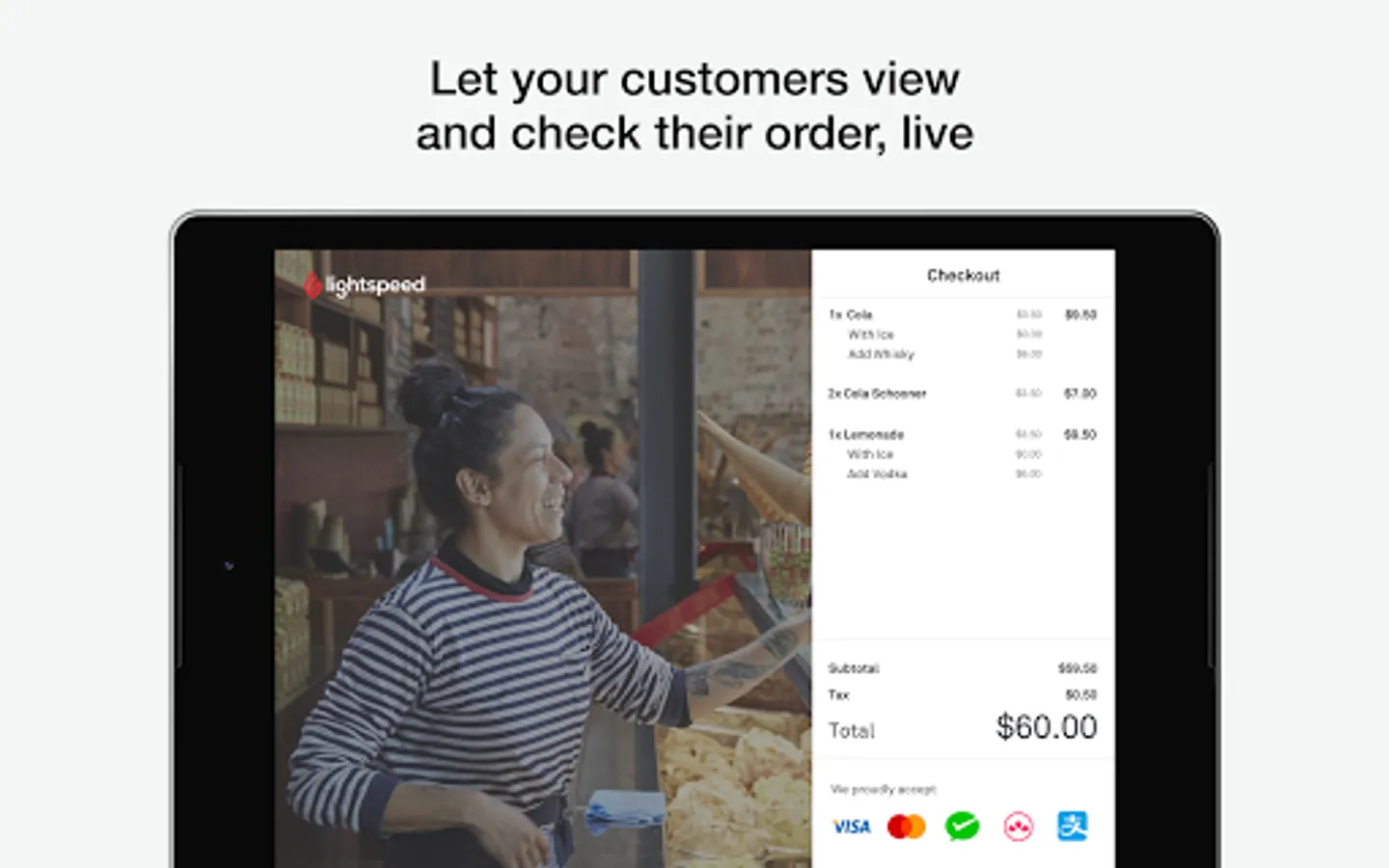 Lightspeed Display empowers your staff to get the orders right no matter how noisy and busy the venue gets. How? By showing the order on a screen facing the customer. This way, the customer can review the order in real-time, while the staff keys it in.