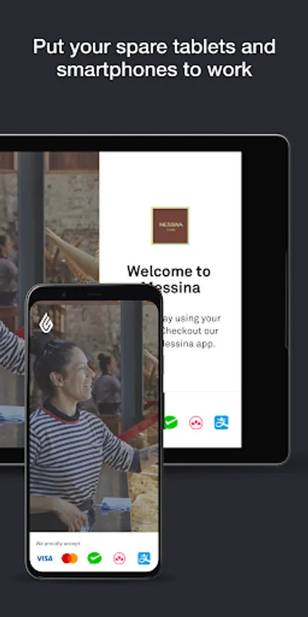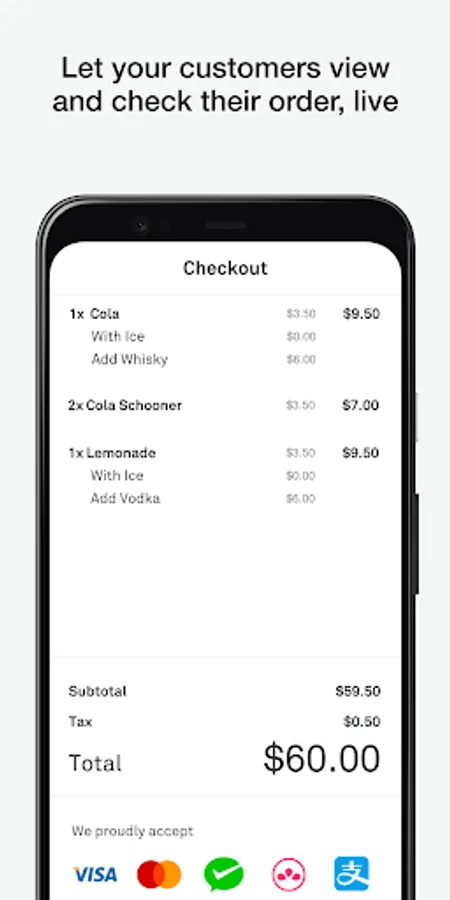 Showcase your payment options on the welcome screen and show customers the status of payments in real-time.