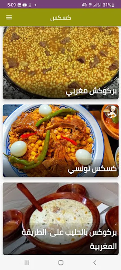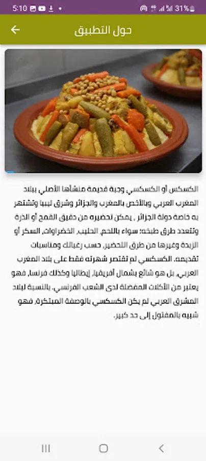 استعماله سهل بحيث تستطيع أي سيدة مبتدئة باتباعها لوصفات هذا التطبيق أن تحضر طبق الكسكي
