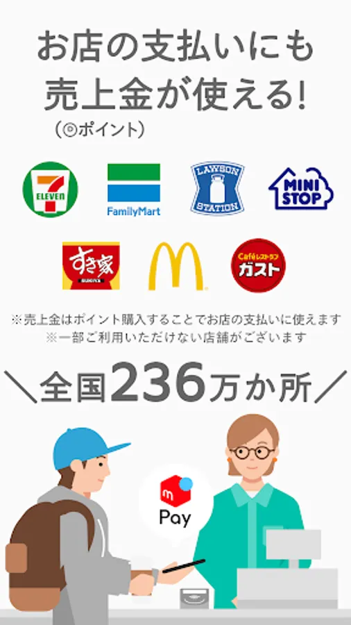 ・Sales proceeds and points can be used at Merpay-compatible stores nationwide. (*1)