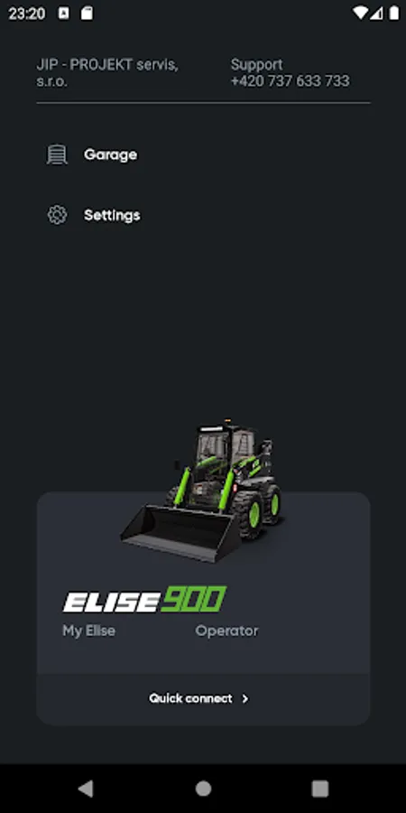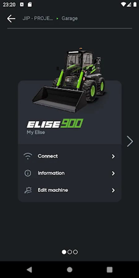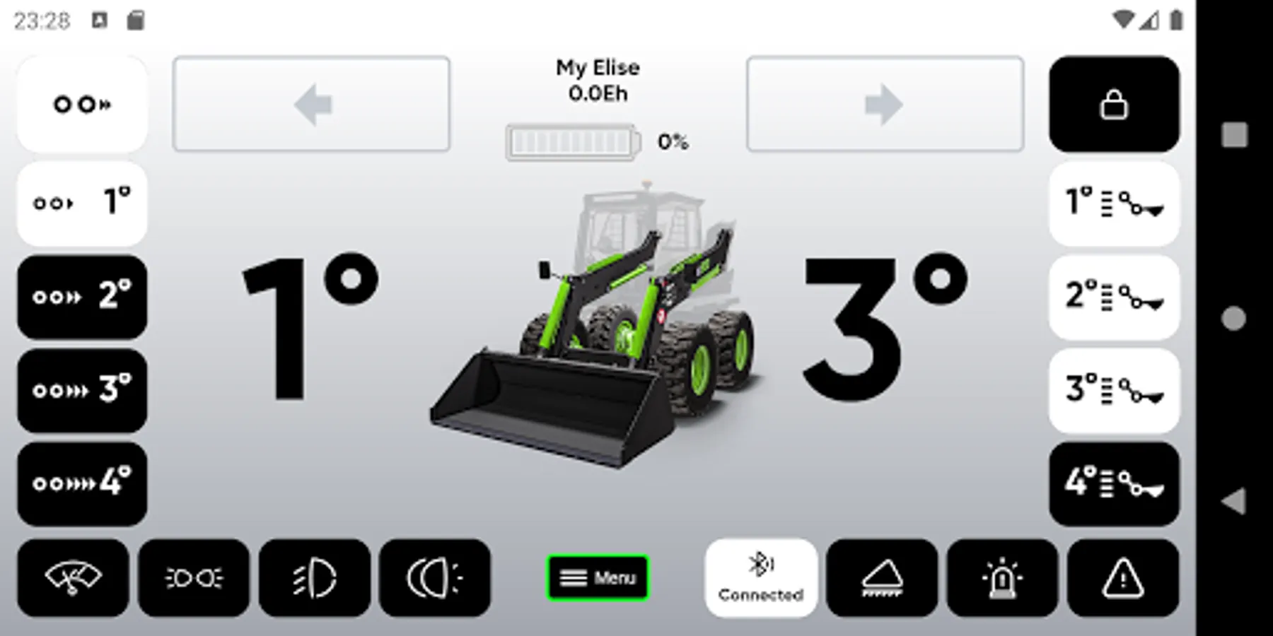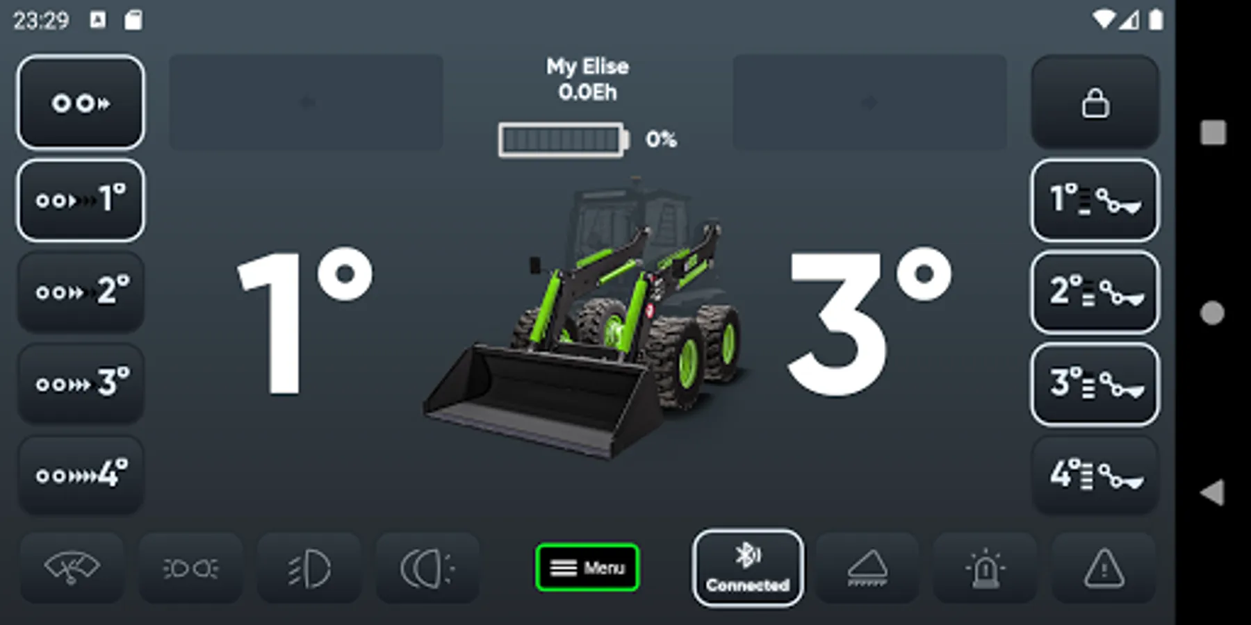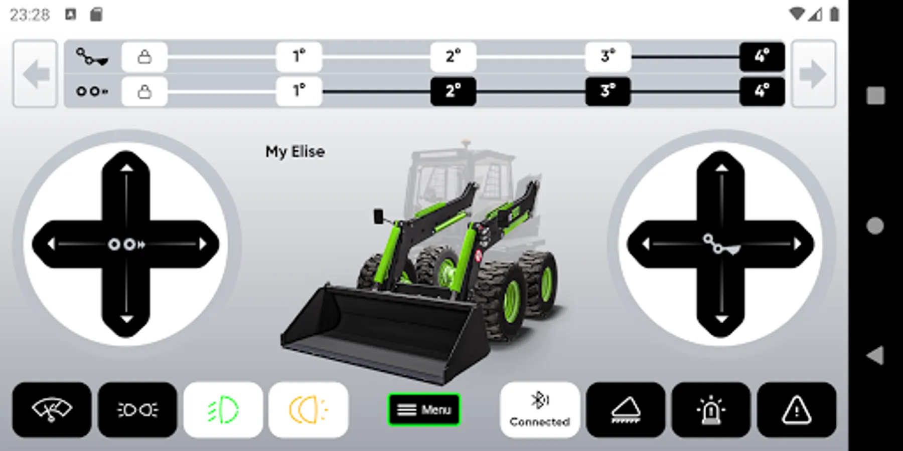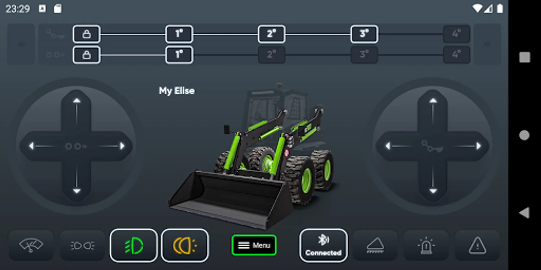 It has a garage for complete management of your machines. To control the Elise 900, controllers are available for in-cab control or remote control of the machine via Bluetooth.