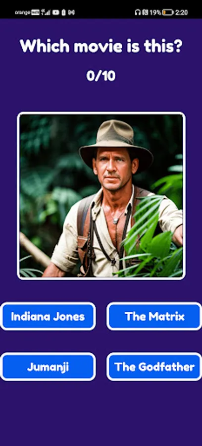 In the first game mode you guess movies: Indiana Jones, Star Wars, Aquaman, Titanic, The Godfather, Forrest Gump, The Matrix, Jumanji, The Transporter, Home Alone.
