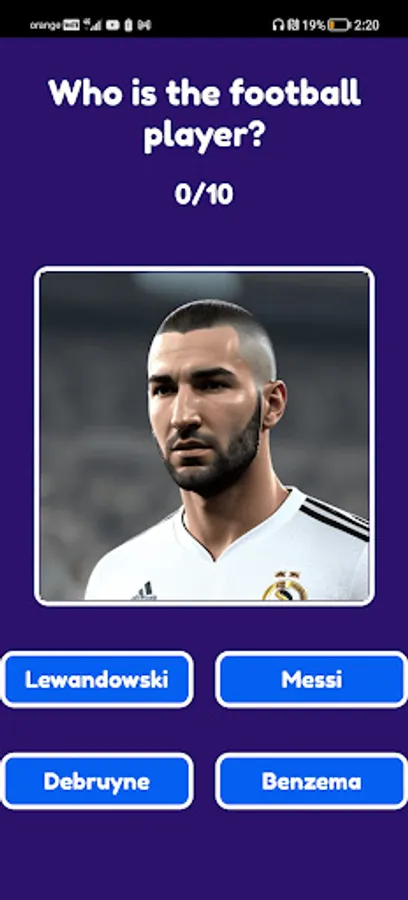 In the second game mode you guess football players: Benzema, Courtois, Davies, Debruyne, Foden, Ibrahimovic, Lewandowski, Messi, Ronaldo, Salah.