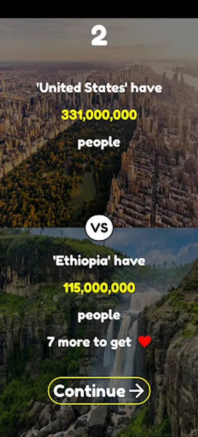 In the third game mode the countries can be: Hungary, Romania, China, India, United States, Indonesia, Pakistan, Brazil, Nigeria, Bangladesh, Russia, Mexico, Japan, Ethiopia, Philippines, Egypt, Vietnam, DR Congo, Turkey, Iran, Germany, Thailand, United Kingdom, France, Italy, Tanzania, South Africa, Myanmar, Kenya, South Korea.
