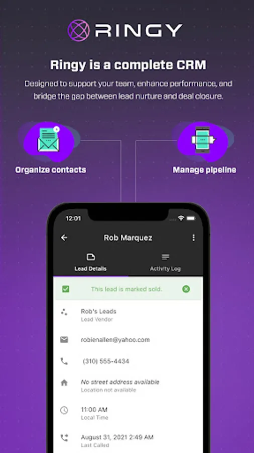Got leads? Close more deals with an automated sales team in your back pocket. Set up your sales pipeline, sync your Google calendar, generate reports, send and receive calls / text messages and more. Ringy offers world-class automation to help clients do more with less.