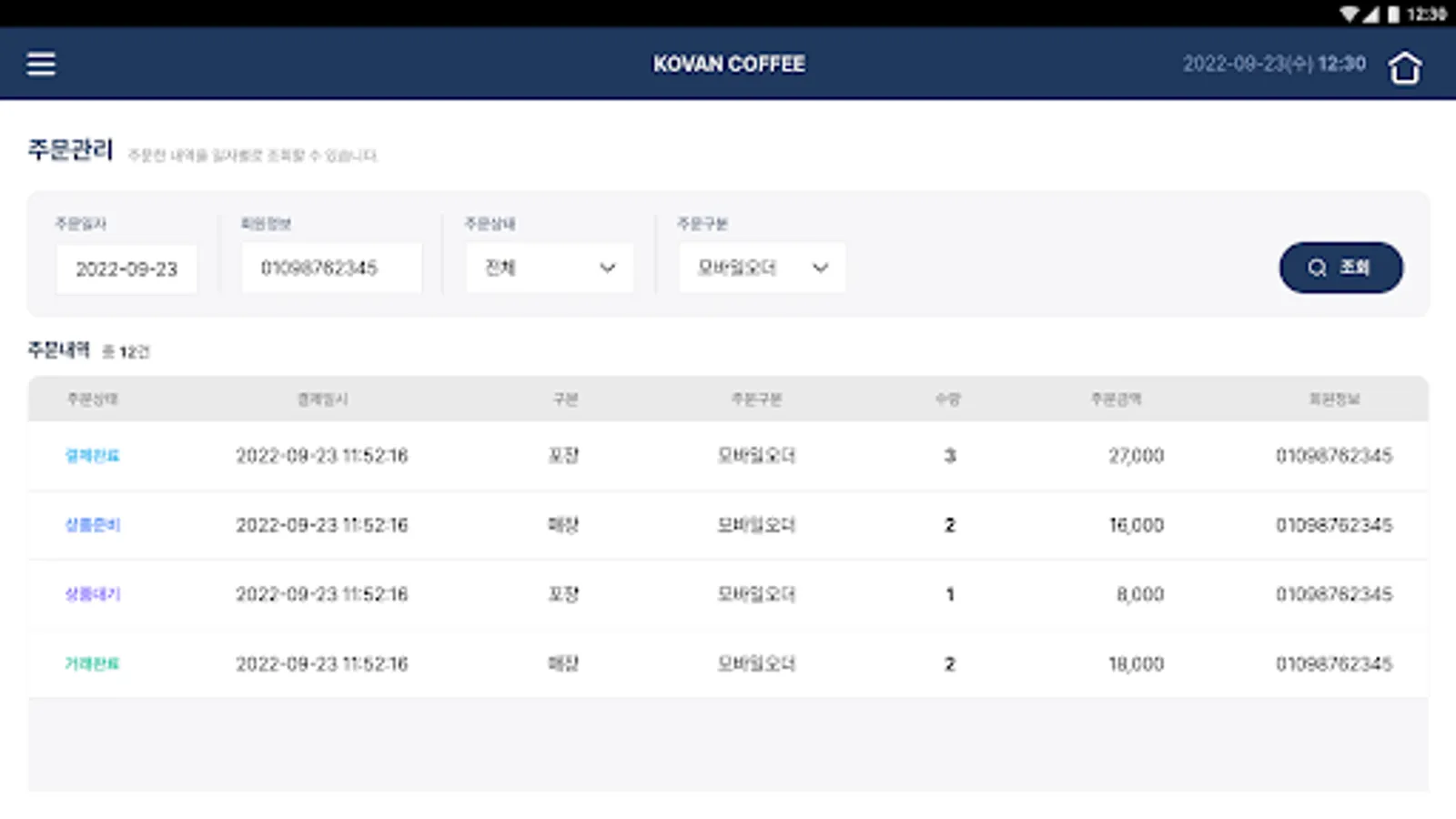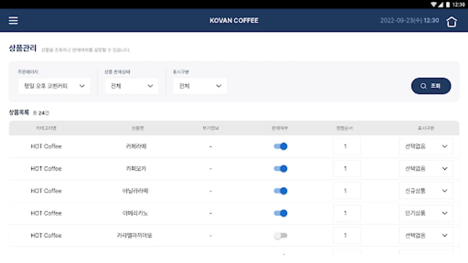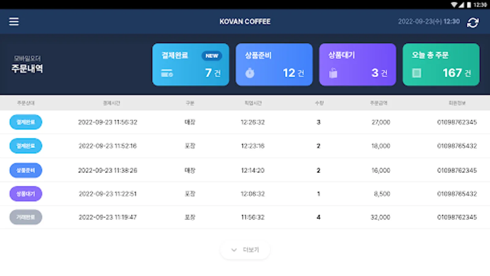 (Note) This is a mobile order merchant app being serviced by KOVAN.