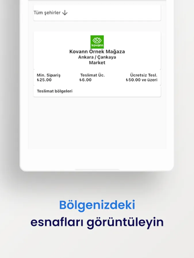 Kovann is a marketplace application that allows you to order from different tradesmen operating in different cities and to visit the shops of tradesmen. With Kovann, you can shop at tradesmen and create orders. Your orders are brought to you by the tradesmen. You can find out which regions deliveries are made on the store page.